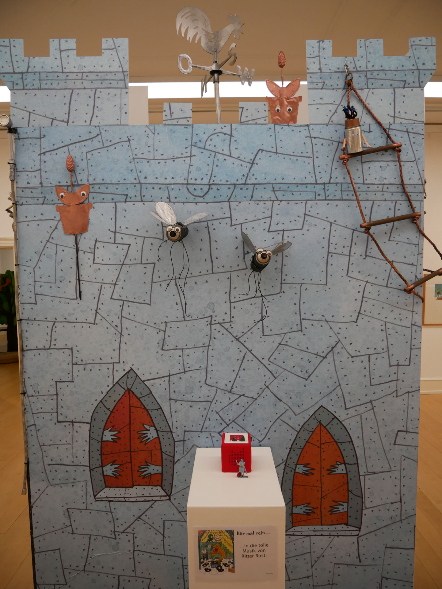 Um der Figur Ritter Rost eine räumliche Präsenz im Ausstellungsraum zu geben, wurde das bekannte Motiv großformatig in den Raum übertragen und szenografisch erweitert.